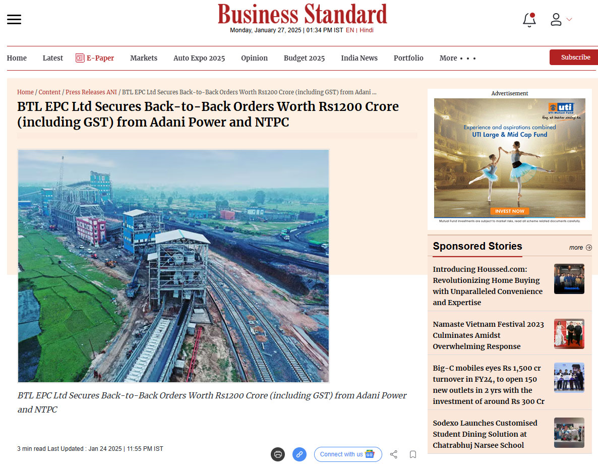BTL EPC Ltd Secures Back-to-Back Orders Worth Rs1200 Crore (including GST) from Adani Power and NTPC - www.lokmattimes.com