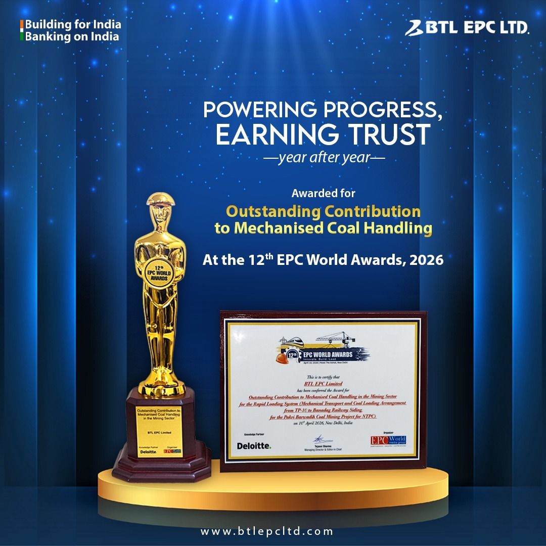 We are incredibly honoured to announce that BTL EPC Ltd. has been awarded for "Outstanding Contribution to Mechanised Coal Handling" at the 12th EPC World Awards 2026, for our work on the Pakhri Barwadih Coal Mining Project (NTPC Limited).